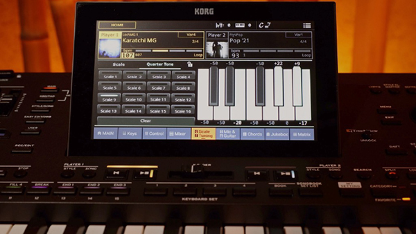 Pa5X ORIENTAL includes an on-screen virtual keyboard that can be used to select alternative scales or instantly retune individual keys on-the-fly. Multiple scales can play at the same time, with soloists playing with an Arabic scale and the backing tracks continuing to play in Equal tuning. An alternative scale tuning can be saved into each Keyboard Set and applied to any Style Sound.