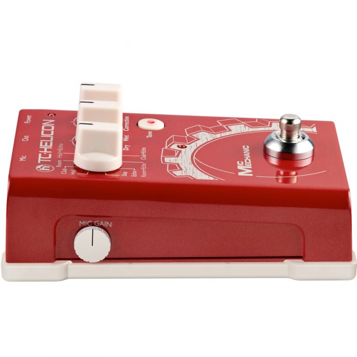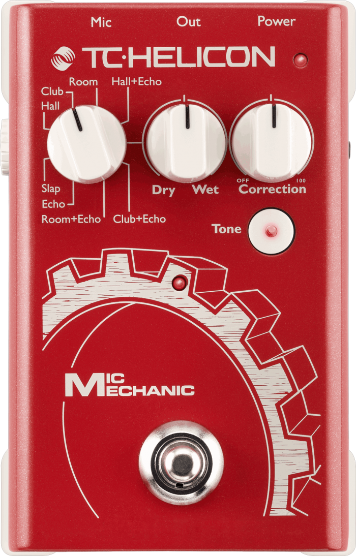 The TC-Helicon VoiceTone Mic Mechanic gives you a powerful vocal toolbox in a compact, easy-to-use pedal. Whether you're blessed with a great voice or struggle just to get through a song, the TC-Helicon VoiceTone Mic Mechanic adds that little extra bit of magic that every vocal performance needs. Mic Mechanic leaves out the superfluous bells and whistles, giving you studio-grade reverb, delay, natural-sounding pitch correction, and adaptive tone - which dynamically tweaks EQ, compression, de-essing and gating on the fly - to make your voice sound its best. Sing awesomely - with TC-Helicon's VoiceTone Mic Mechanic.
