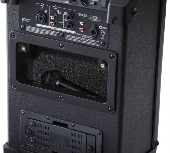 With the BA-55, ease of use is the name of the game. There’s nothing complicated about it: just turn on the wireless microphone and/or plug in your instruments, set the volume to the desired level, and go. That’s it! The BA-55’s automatic anti-feedback system blocks acoustic feedback without interrupting your audio. For easy transport, the BA-55 has a convenient built-in storage compartment to house your wireless microphones and accessories.