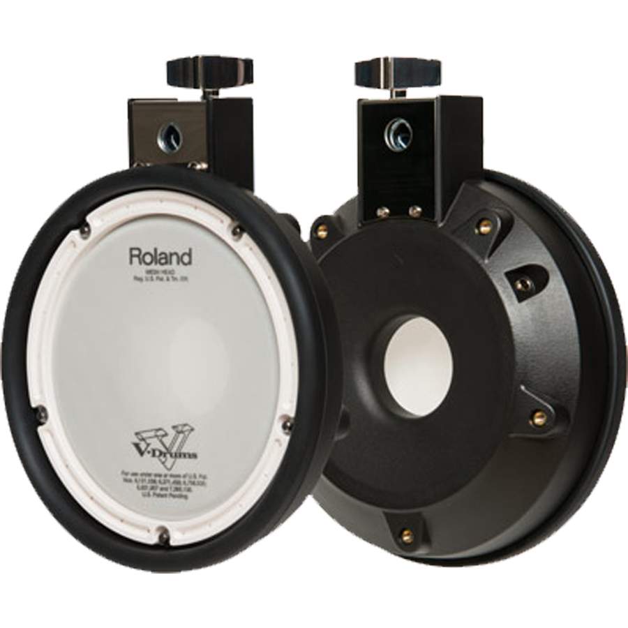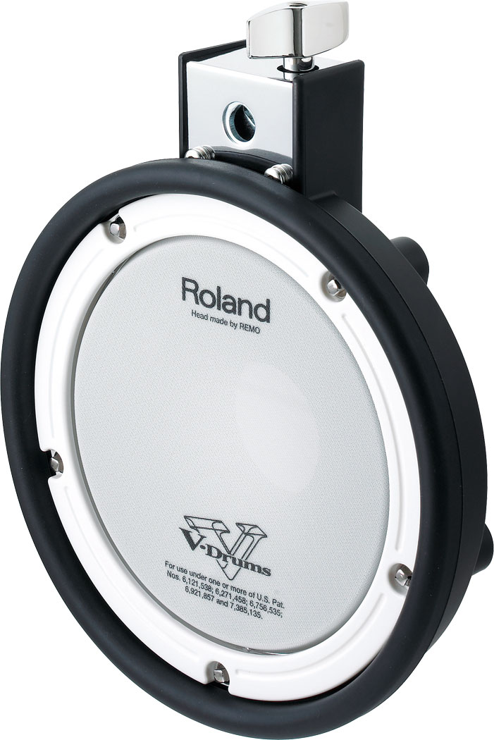 The PDX-6 is the smallest of the Roland V-Pads. Originally designed as a tom pad for the TD-4KX, it provides dual triggering from its 6.5" mesh head and 8" rim.