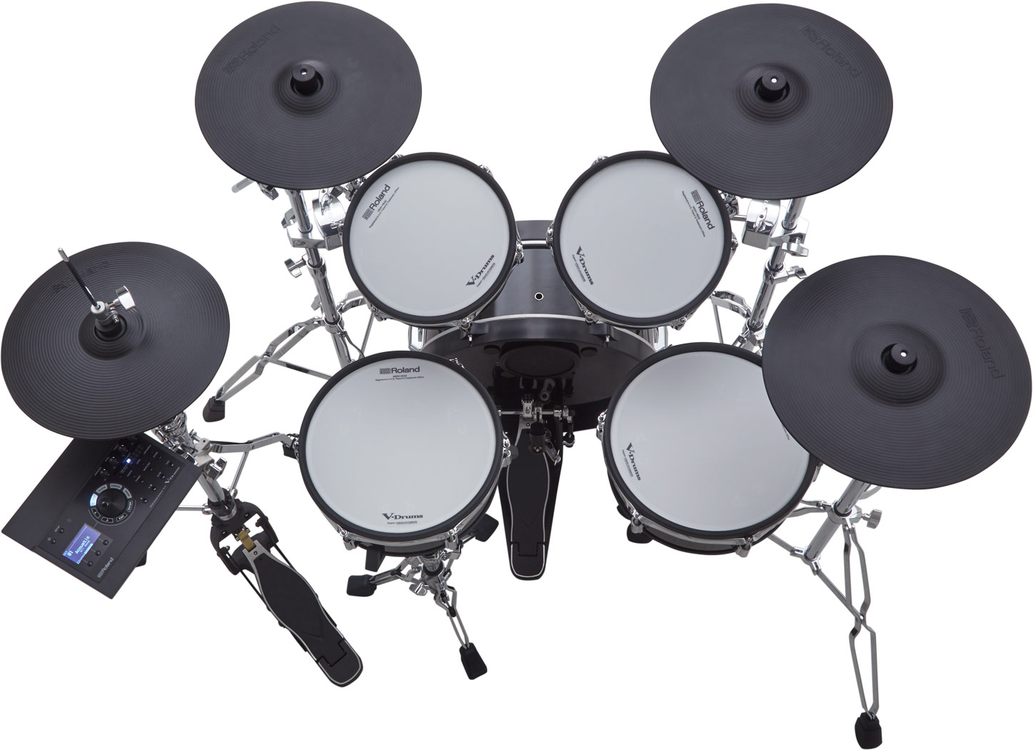 The way acoustic drums and cymbals are mounted not only projects a classic image—it also influences the playing feel. The tom pads mount on the same stands used for acoustic toms—so they feel just right when they’re hit. And every stand is double-braced for rock-solid stability, and easily adjusted to suit your preferred layout.